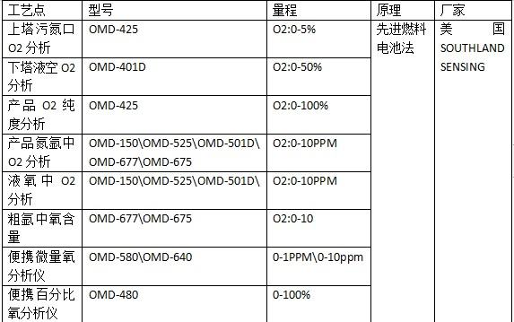 空分氧分析儀選型相關資料美國SOUTHALAND SENSING